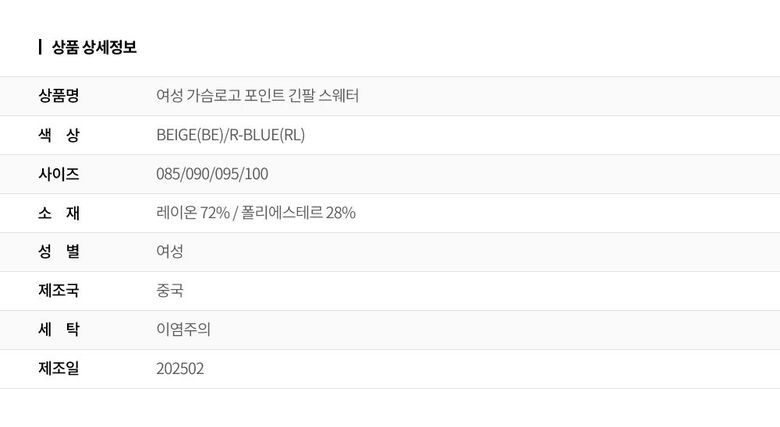 | 2. 색상 | 색상:BEIGE(BE)/R-BLUE(RL) |