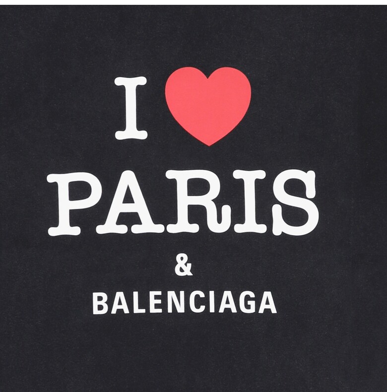 발렌시아가 764235 TRVU9 1041 아이 러브 파리 아트워크 공용 반팔티