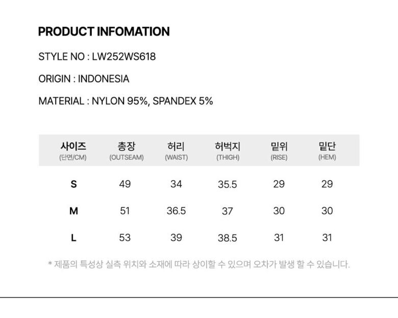 | 1. 제품 소재 (섬유의 조성 또는 혼용률을 백분율로 표시, 기능성인 경우 성적서 또는 허가서) | 겉감:나일론 95%, 폴리우레탄 5% |