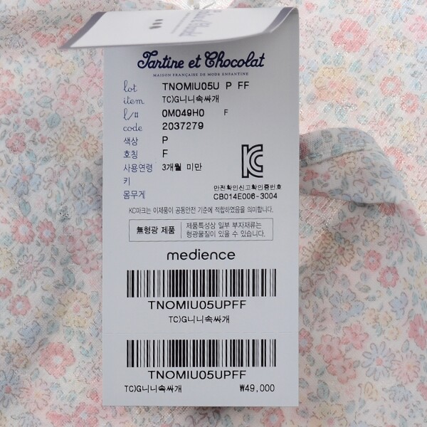세탁방법 및 취급시 주의사항 : 삶지 마십시오. 기계건조 금지. 주의! 작은 부품이 탈락되면 삼킬 수 있음.