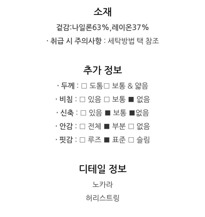 | 6. 세탁방법 및 취급시 주의사항 | 상품상세참조 |