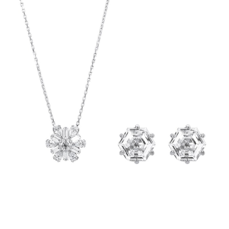 스와로브스키 5691486 Idyllia 눈꽃 플라워 귀걸이 세트 목걸이