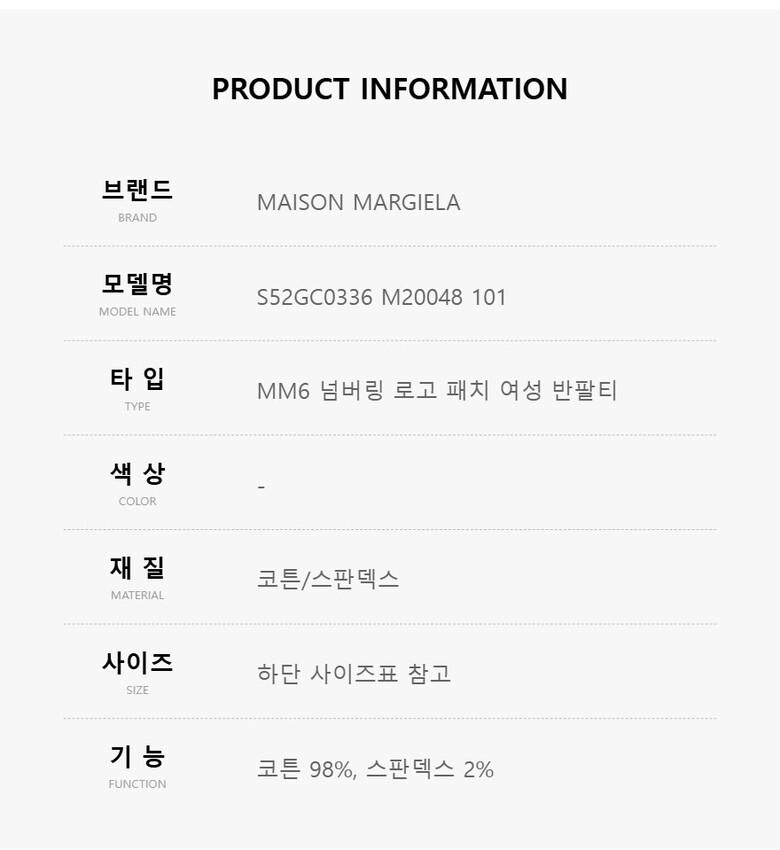 메종마르지엘라 S52GC0336 M20048 101 MM6 넘버링 로고 패치 여성 반팔티