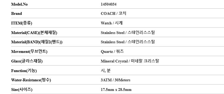 * 상품 옵션(사이즈) : 모델명:14504034 *