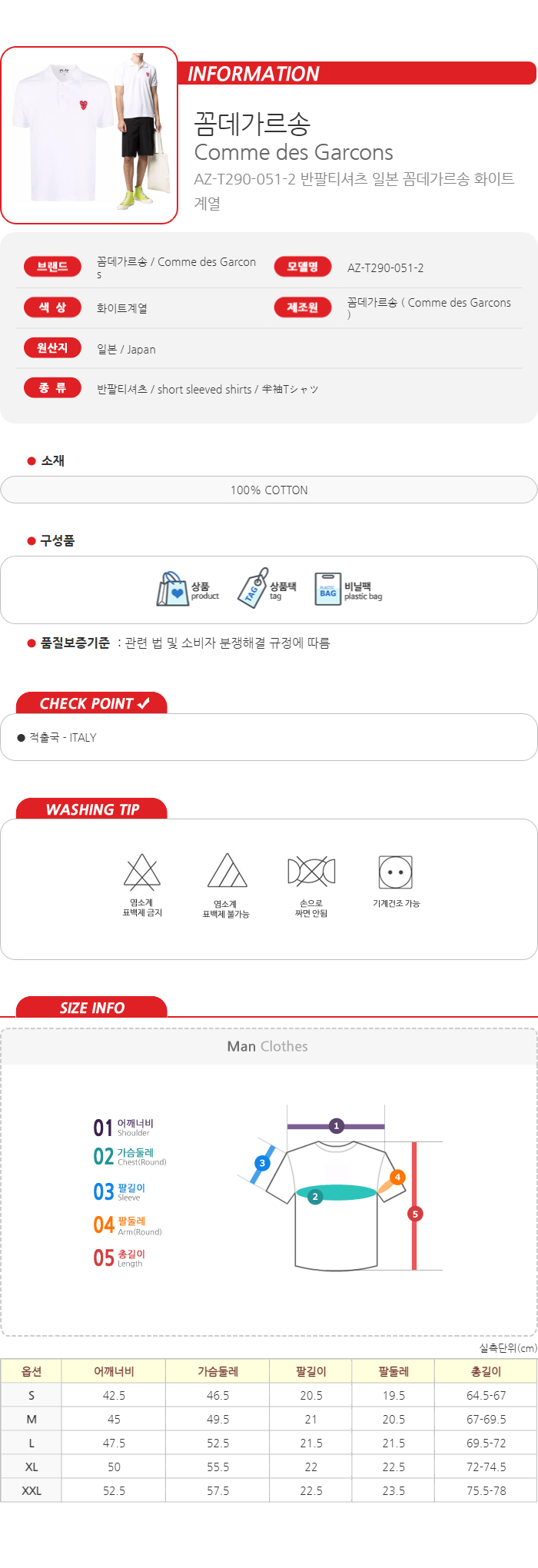 [명품] 꼼데가르송 하트 와펜 PK 티셔츠 AZ T290 051 2