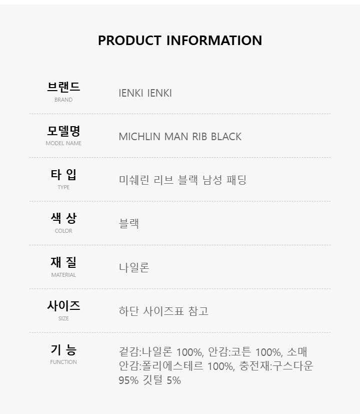 [명품] MICHLIN MAN RIB BLACK 남성 패딩