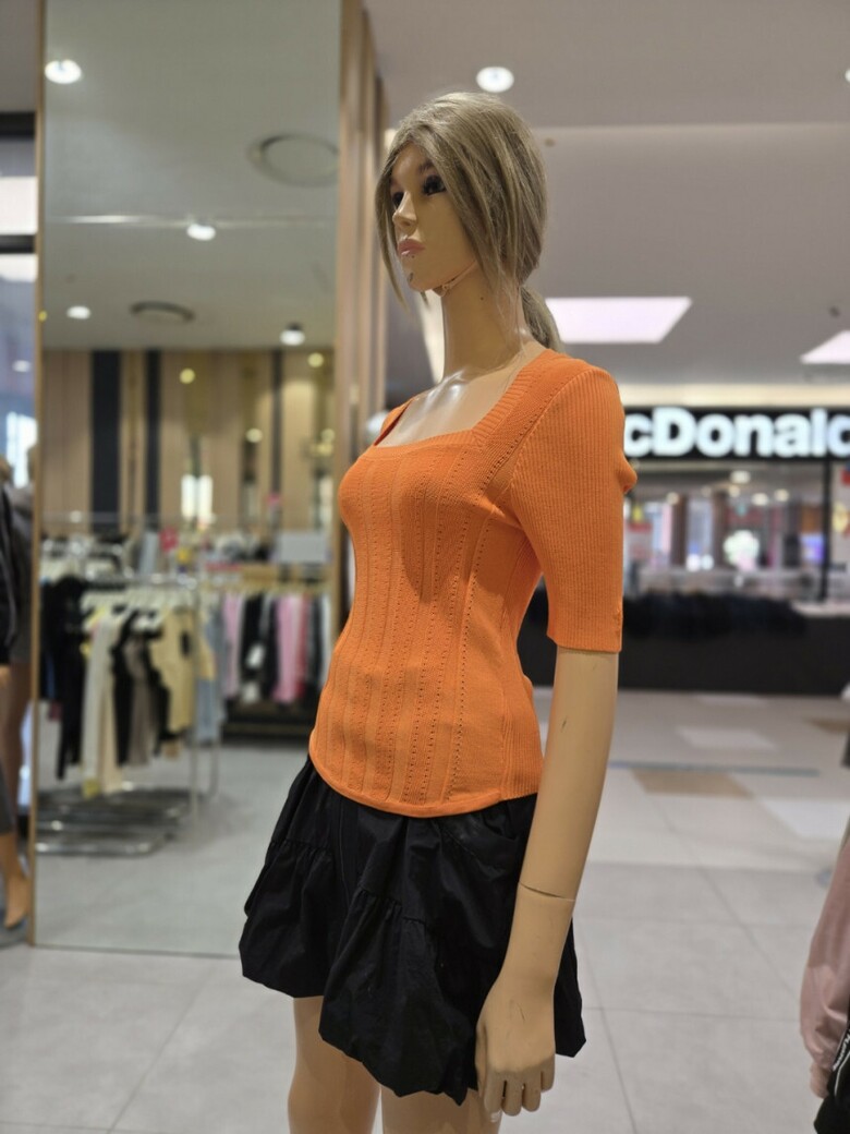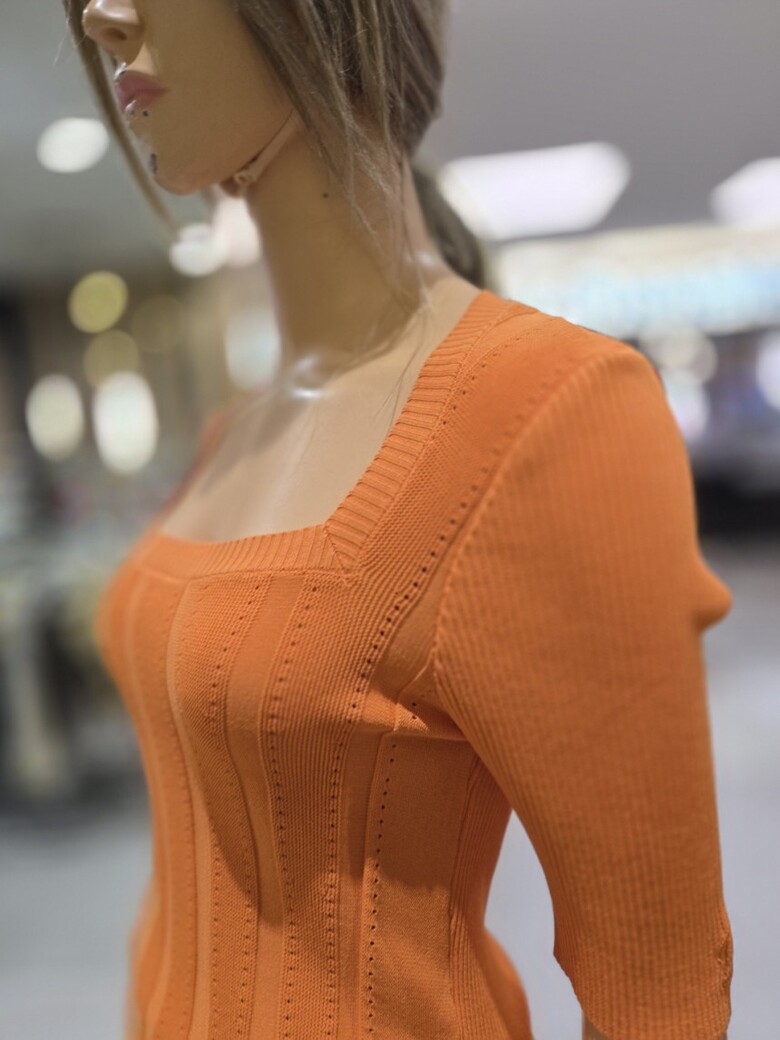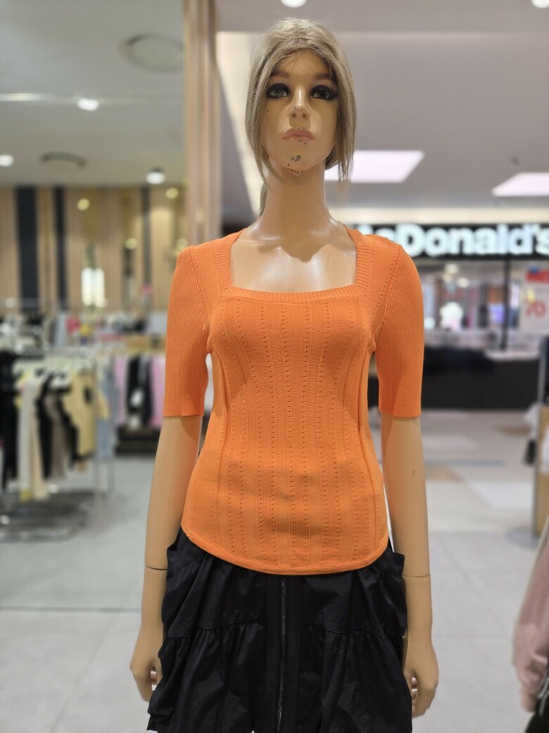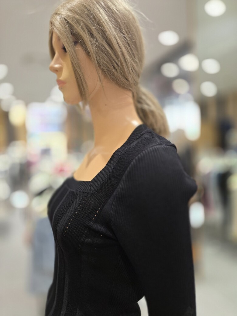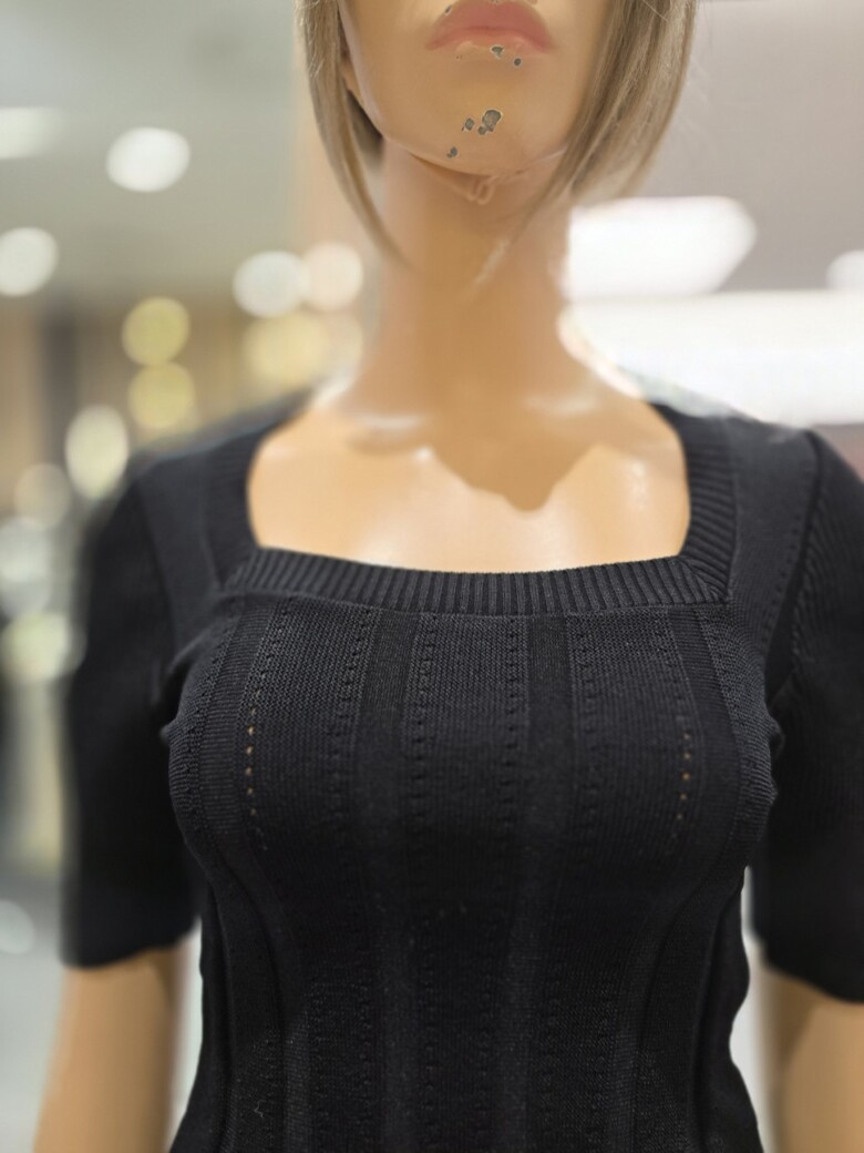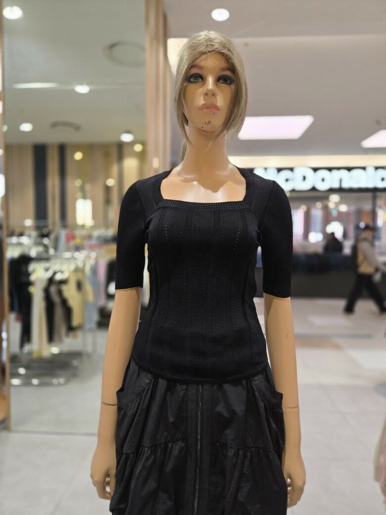 스퀘어넥 펀칭 조직 포인트 슬림니트 EQ2OKH11