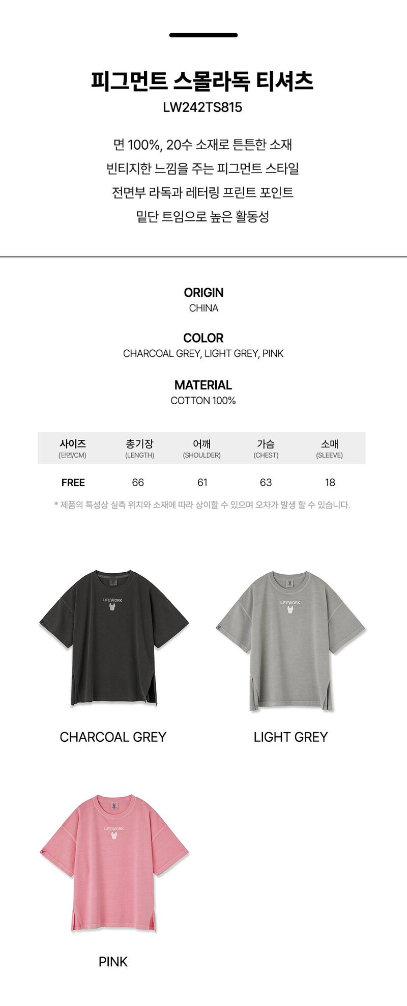 [라이프워크] 여성) 피그먼트 스몰라독 티셔츠 (LW242TS815-07)