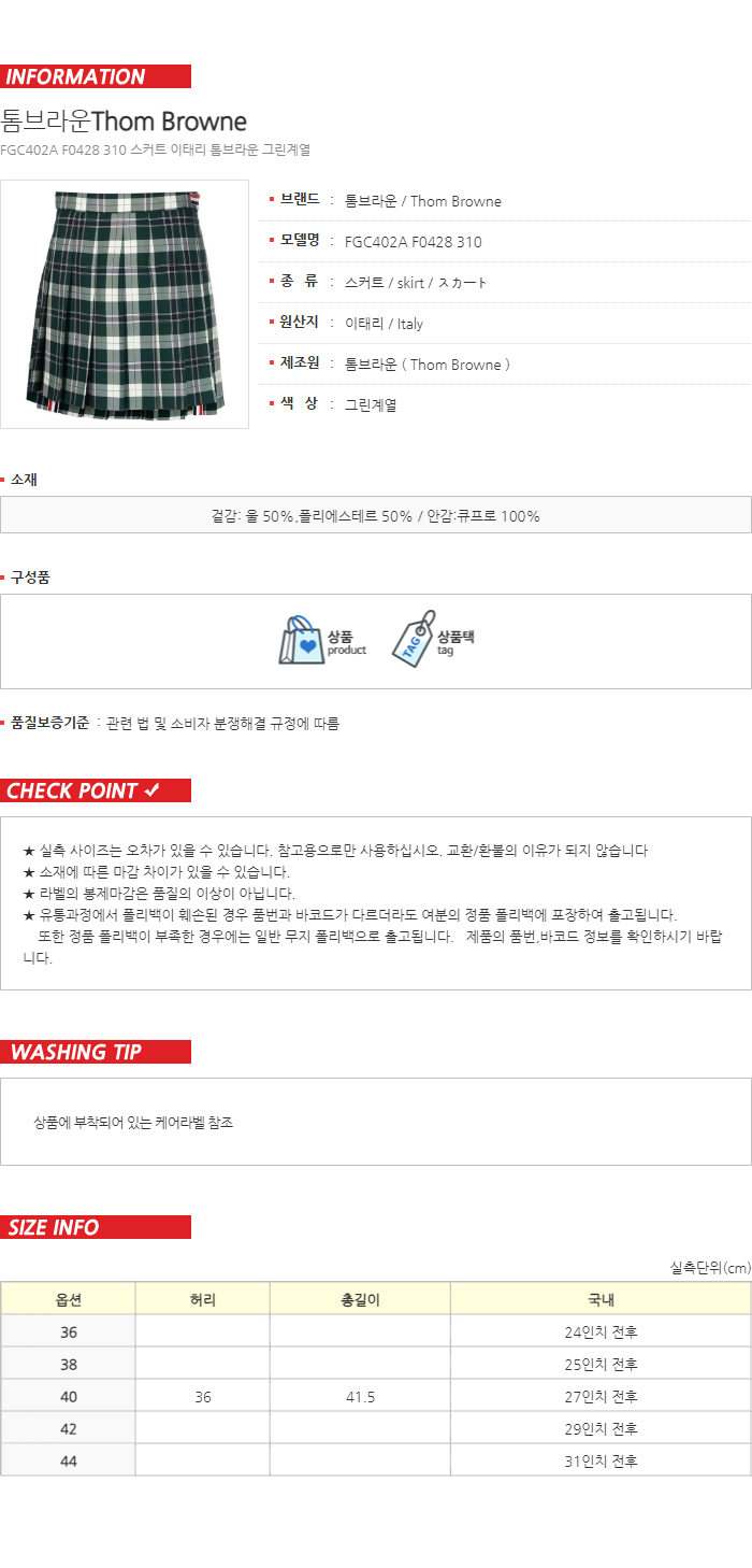 [명품] 톰브라운 타탄 트윌 플리츠 미니 스커트 FGC402A F0428 310