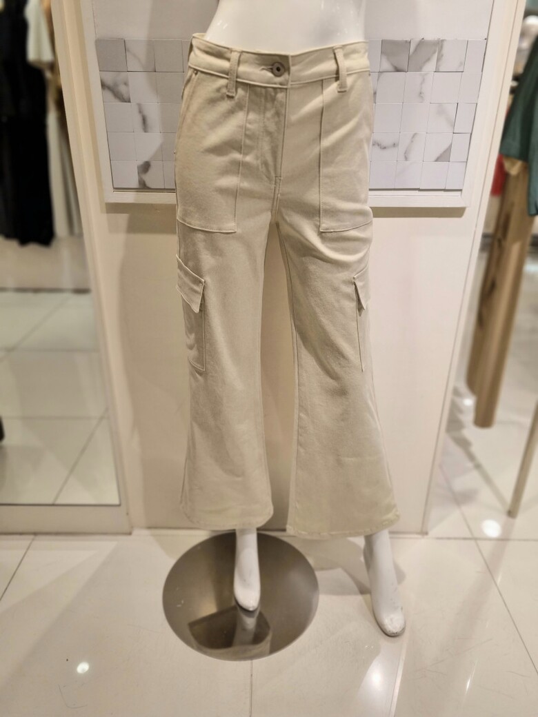 허리선에 착용 면소재 라인 살려주는 스판성좋은 부츠컷 카고팬츠입니다