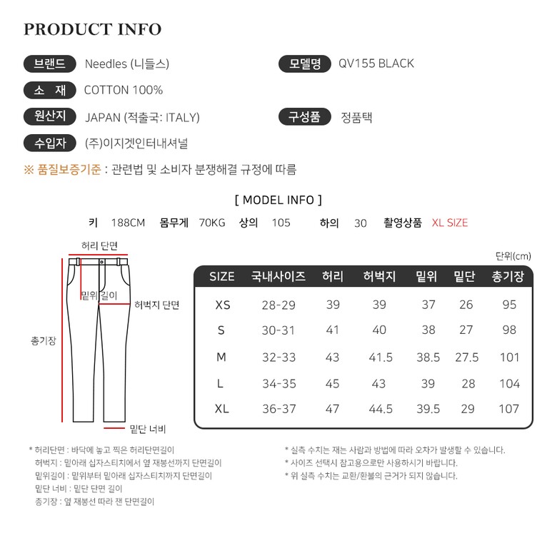| 1. 제품 소재 (섬유의 조성 또는 혼용률을 백분율로 표시, 기능성인 경우 성적서 또는 허가서) | 상세페이지 참조 |