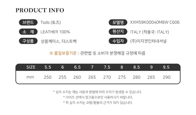 | 1. 제품 소재 (운동화인 경우에는 겉감, 안감을 구분하여 표시) | 상세페이지 참조 |