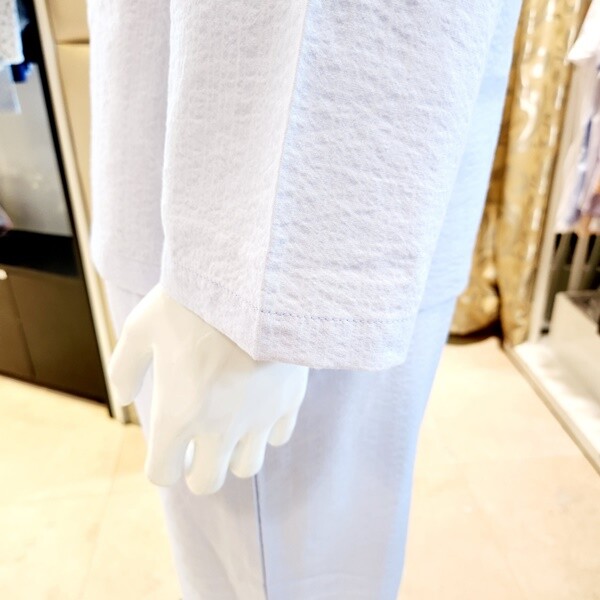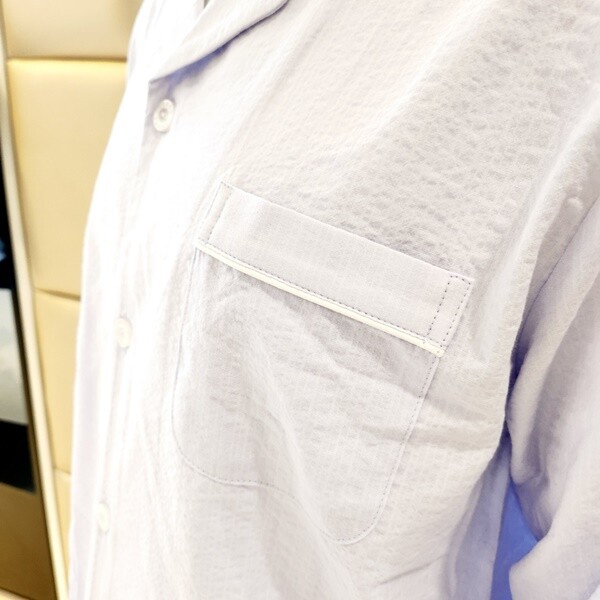 은은한 요철감이 있는 시어서커 소재의 솔리드 파자마입니다.