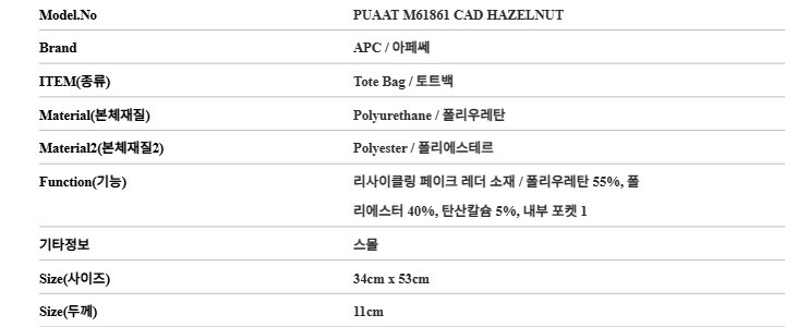 * 상품 옵션(사이즈) : 모델명:PUAAT M61861 CAD HAZELNUT *