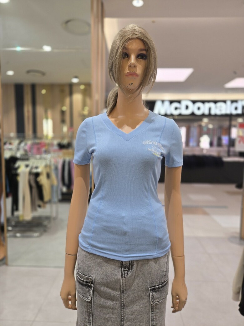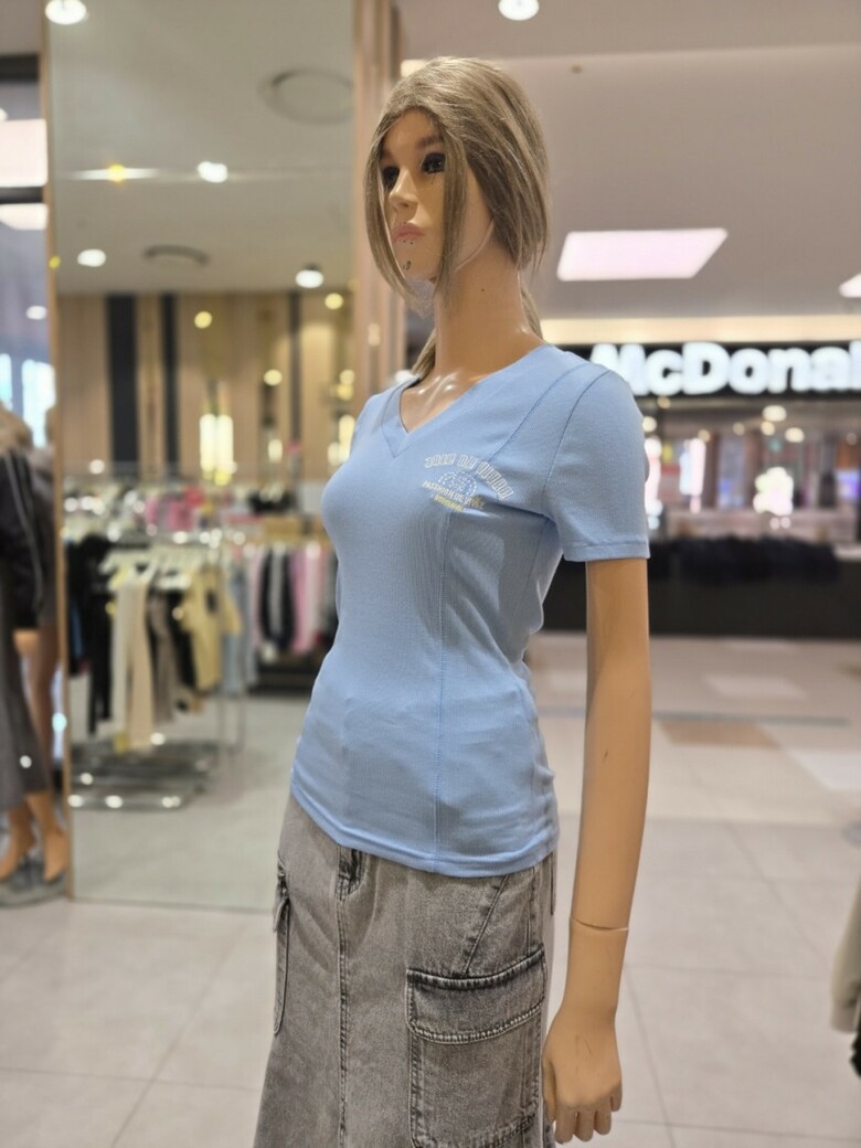 가위루빠 포인트 V넥 슬림 티셔츠 EQ2CH564