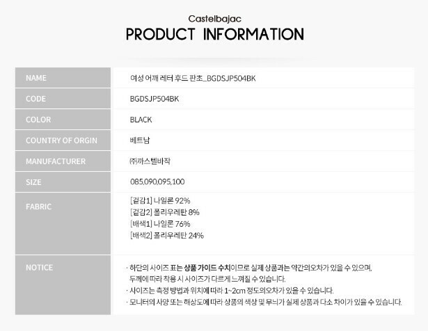 | 1. 품명 및 모델명 | 여성 반팔 바람막이 점퍼(판초스타일) |