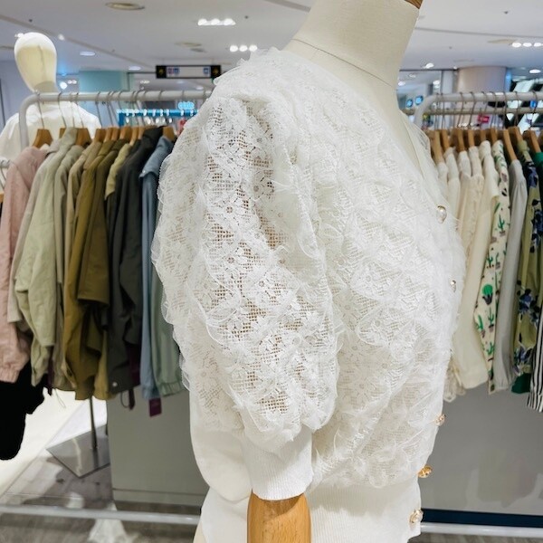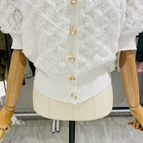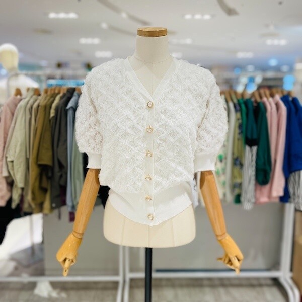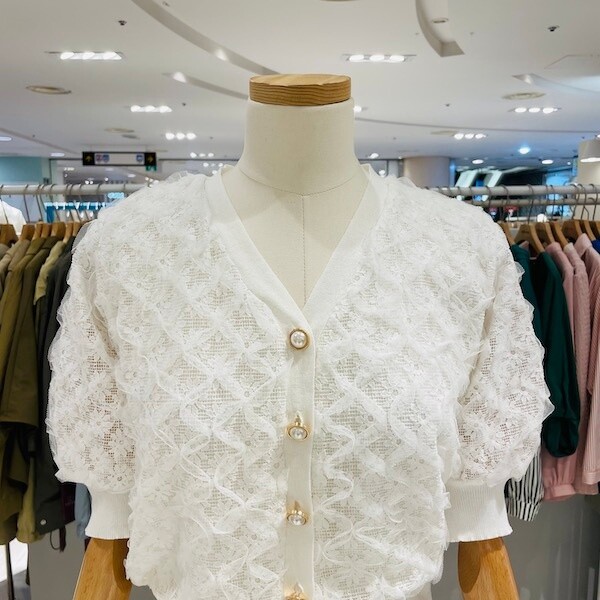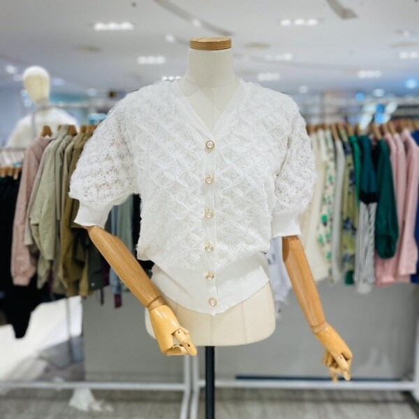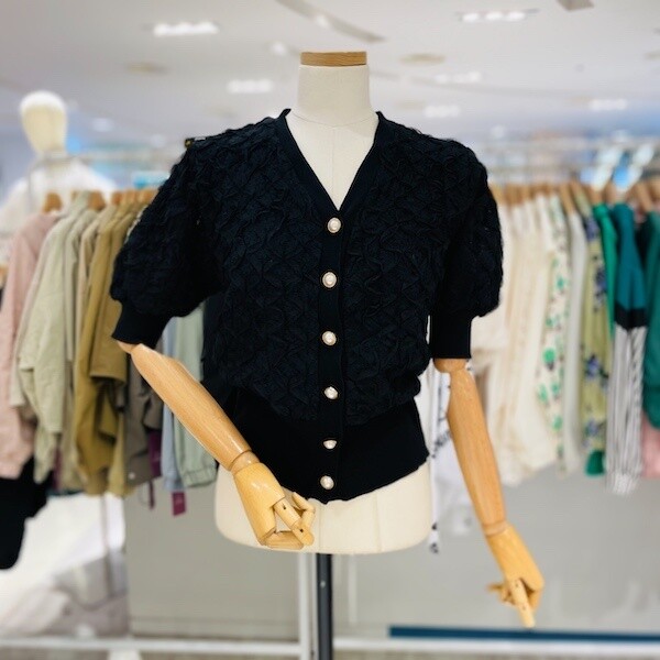 A25SW5209_V넥 펄 플라워 반팔 가디건