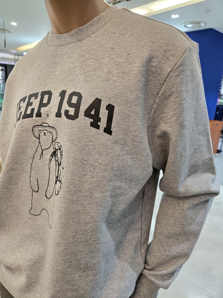 가슴에 크게 지프 베어와 로고를 프린트해 포인트를 살린 맨투맨 입니다.