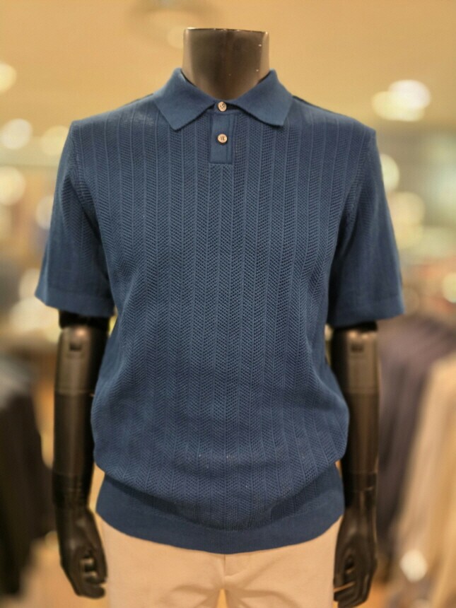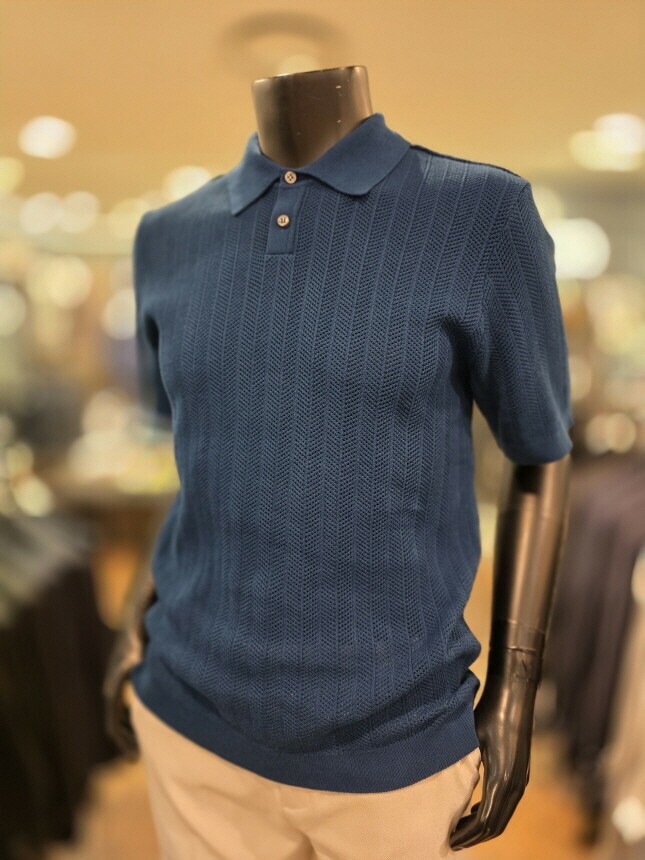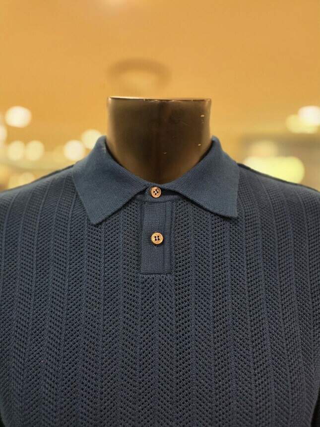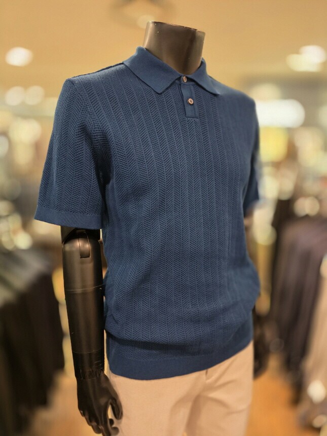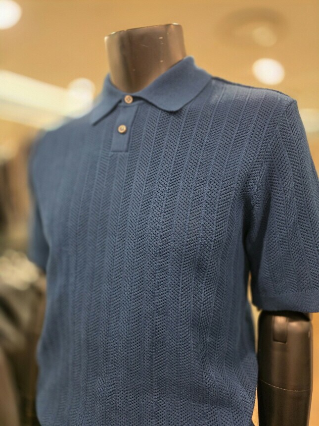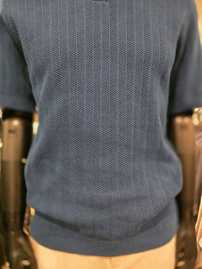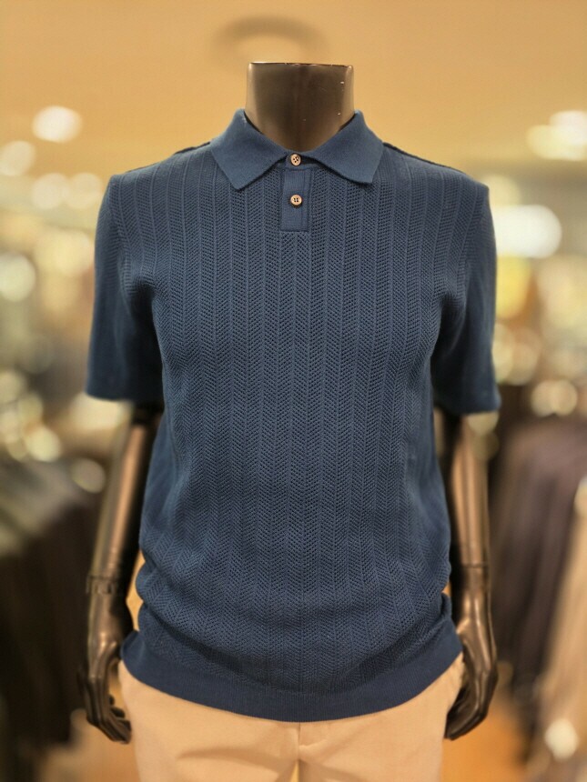 [바쏘옴므] Z2WT33A 25년S/S 네이비 헤링본타공 피케티셔츠 스타일 베이직 니트