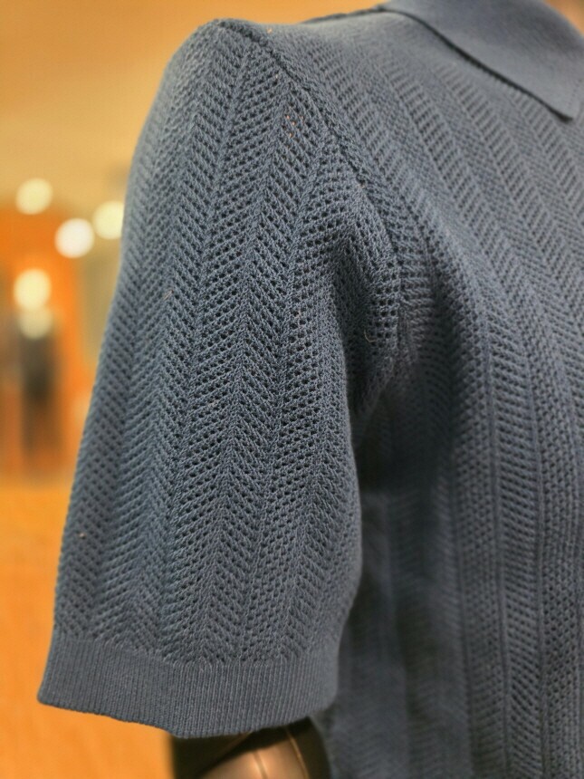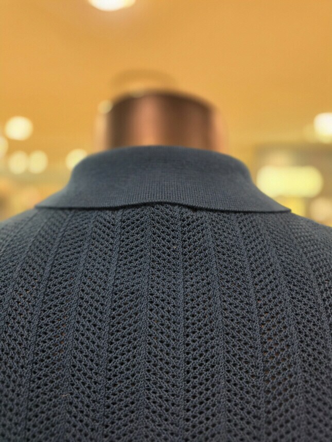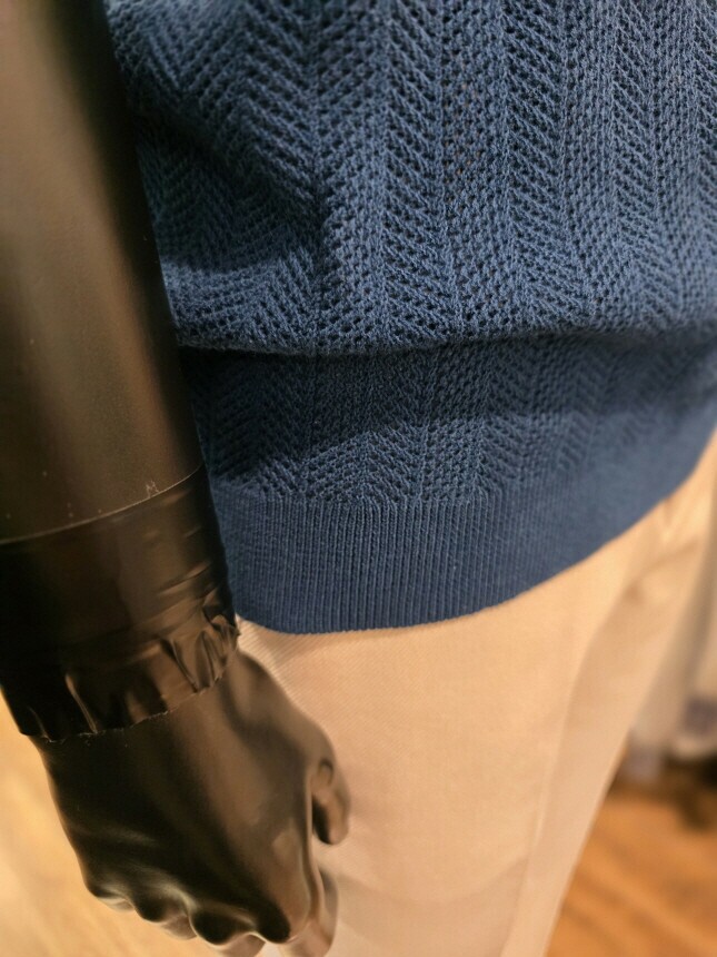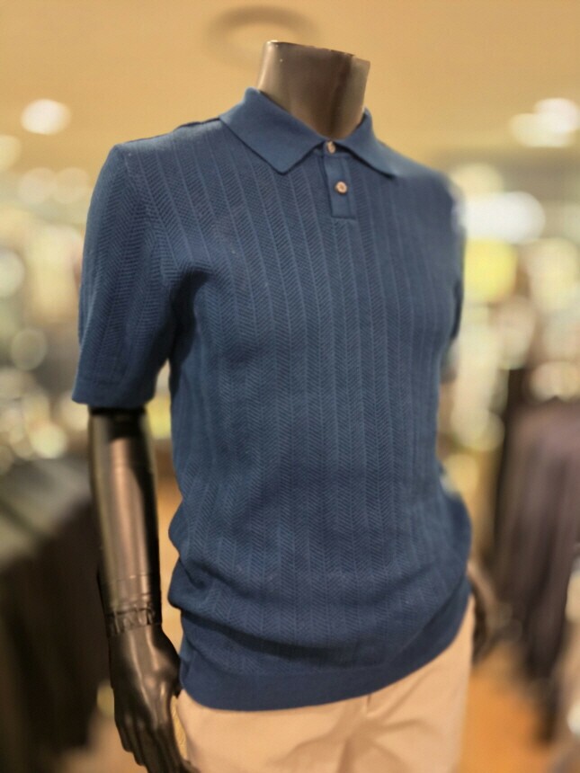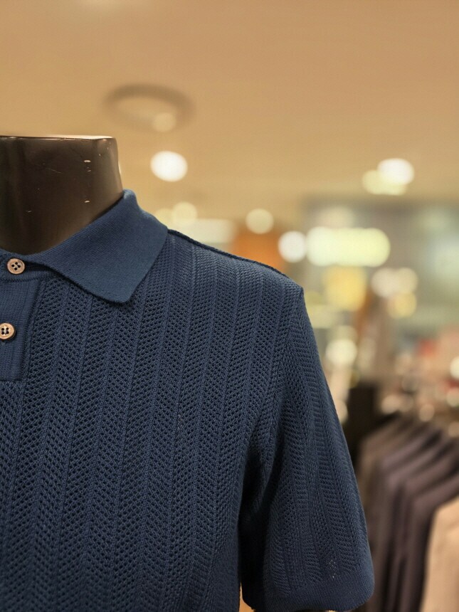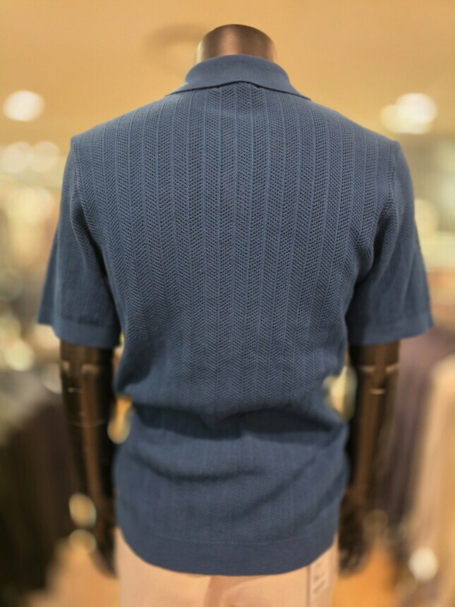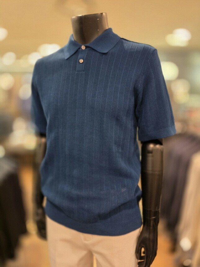 [바쏘옴므] Z2WT33A 25년S/S 네이비 헤링본타공 피케티셔츠 스타일 베이직 니트