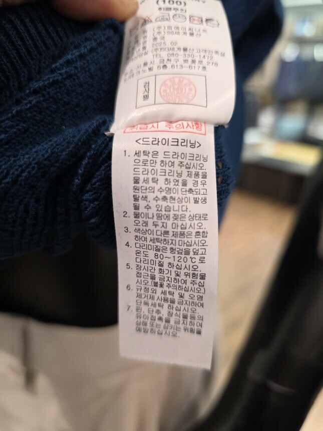 | 6. 세탁방법 및 취급시 주의사항 | 드라이크리닝 |