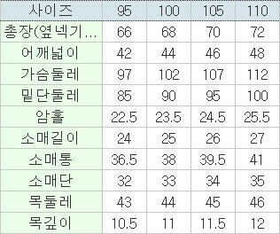 | 3. 치수 | 95,100,105,110 |
