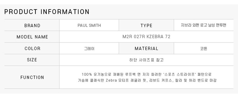 [명품] 폴스미스 M2R 027R KZEBRA 72 지브라 와펜 로고 레귤러핏 남성 맨투맨