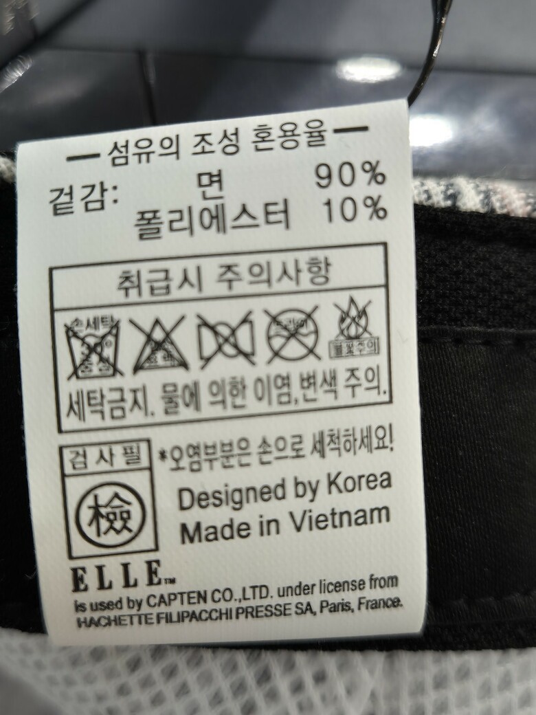 | 2. 소재 | 겉감:면 90%, 폴리에스테르 10% |