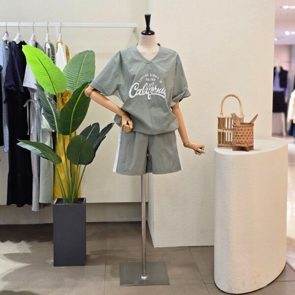 FM5C9ST5115_레터링 브이넥 티셔츠 쇼츠 셋업