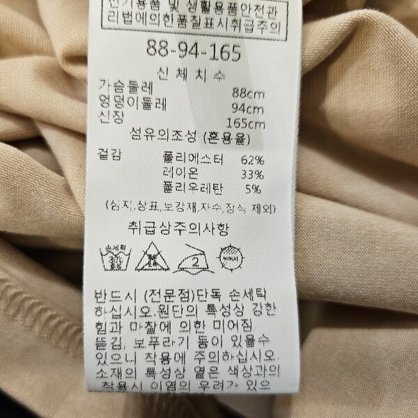 제품소재 : 겉감-폴리에스터62%, 레이온33%, 폴리우레탄5%