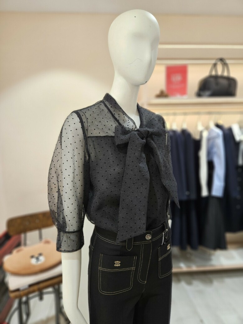 오간자 퍼프 타이넥 블라우스 GR4M0BL941