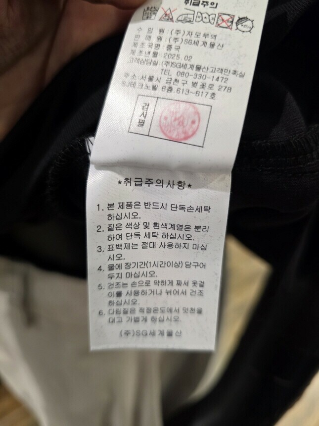 6. 세탁방법 및 취급시 주의사항 단독 물세탁