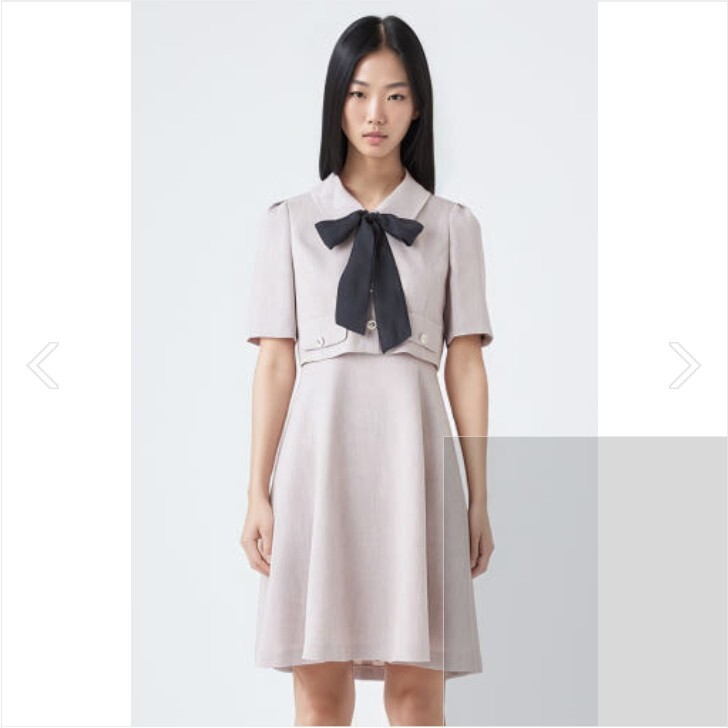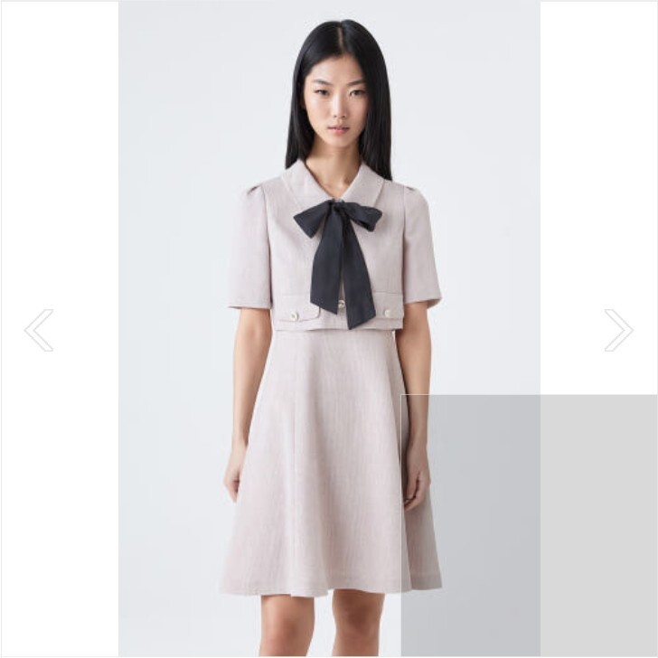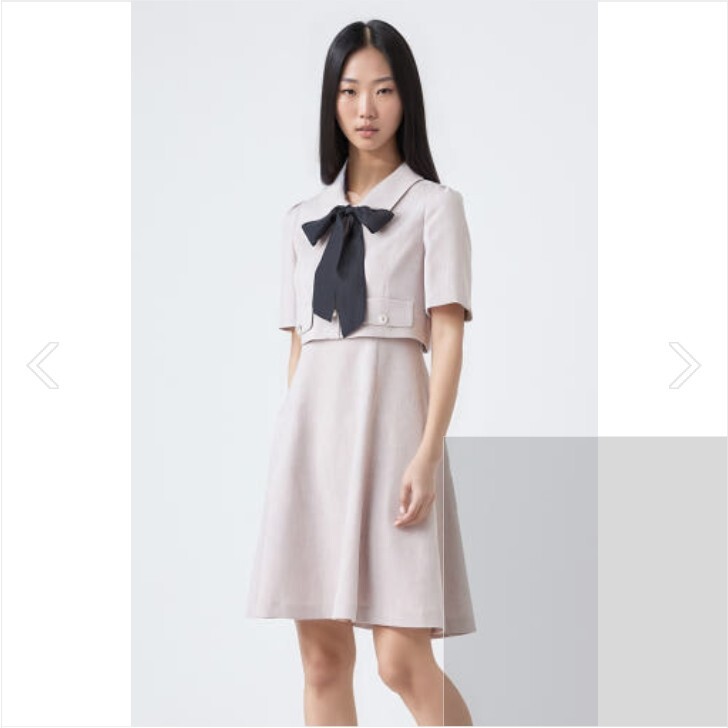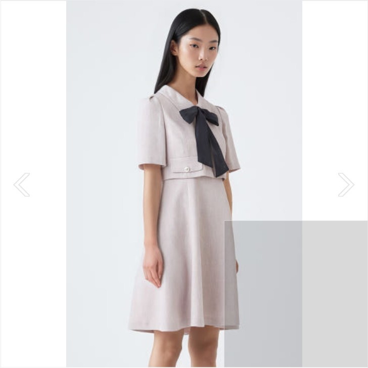 리본타이로 다양한 연출이 가능한 미디 기장의 반소매 원피스입니다.