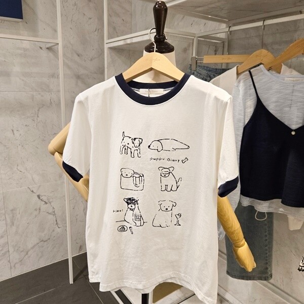 F5BTS004A_강아지 배색 티셔츠