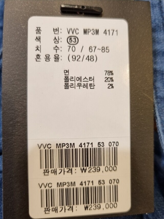 | 1. 제품 소재 (섬유의 조성 또는 혼용률을 백분율로 표시, 기능성인 경우 성적서 또는 허가서) | 상품상세참조 |