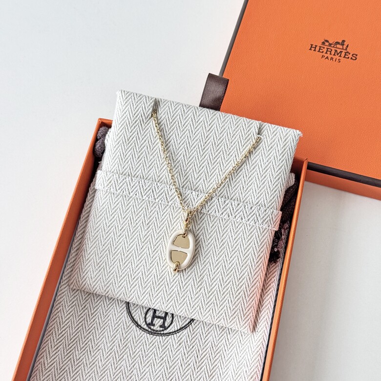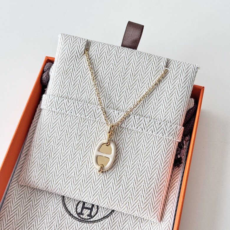 [명품] 에르메스 미니 메일론 샹달 목걸이 크림 골드 체인