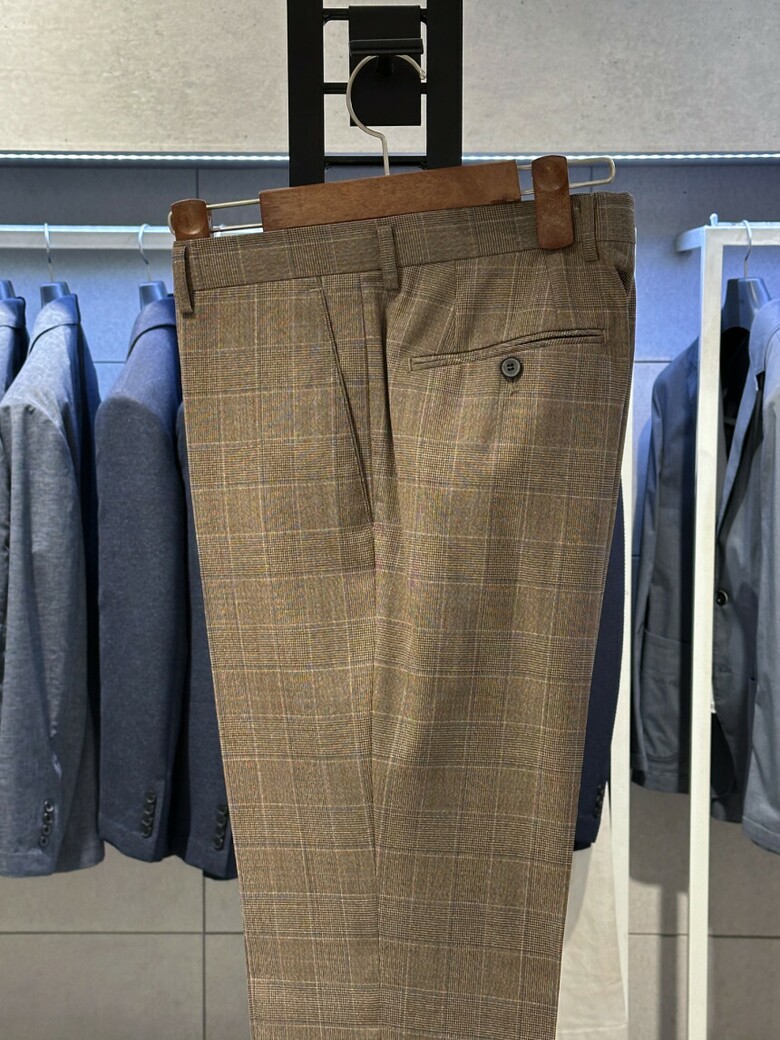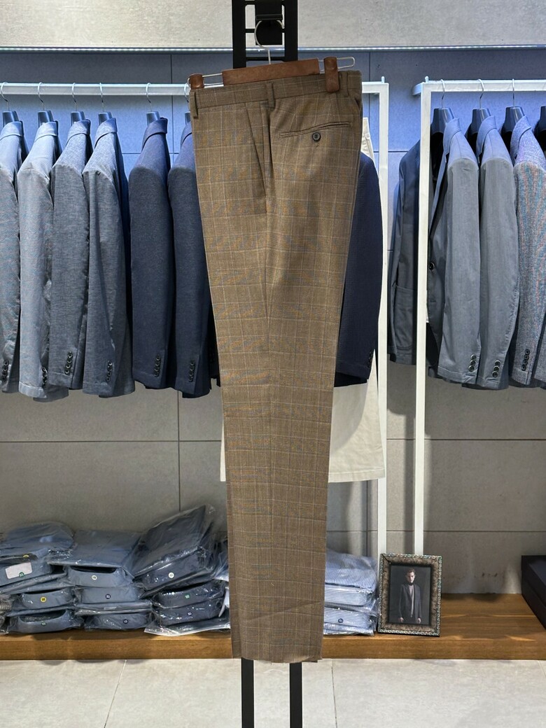 트루젠 이태리수입 봄여름 브라운체크 기본핏 정장바지 2222TP065213-1