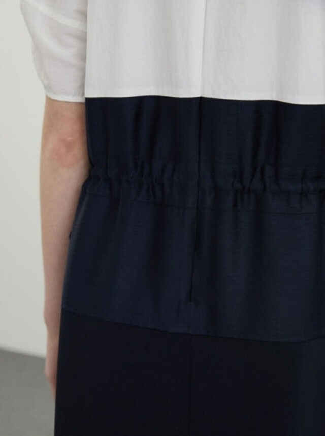 몸판 상단과 하판을 서로 다른 소재를 블록하였으며