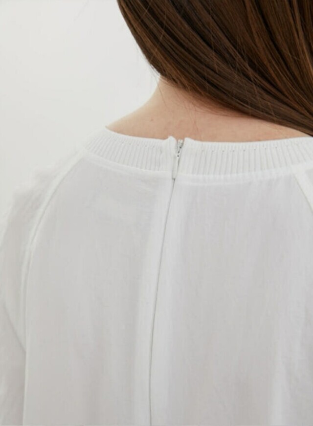 네크라인에 니트 패치를 더해 스타일리시한 감각이