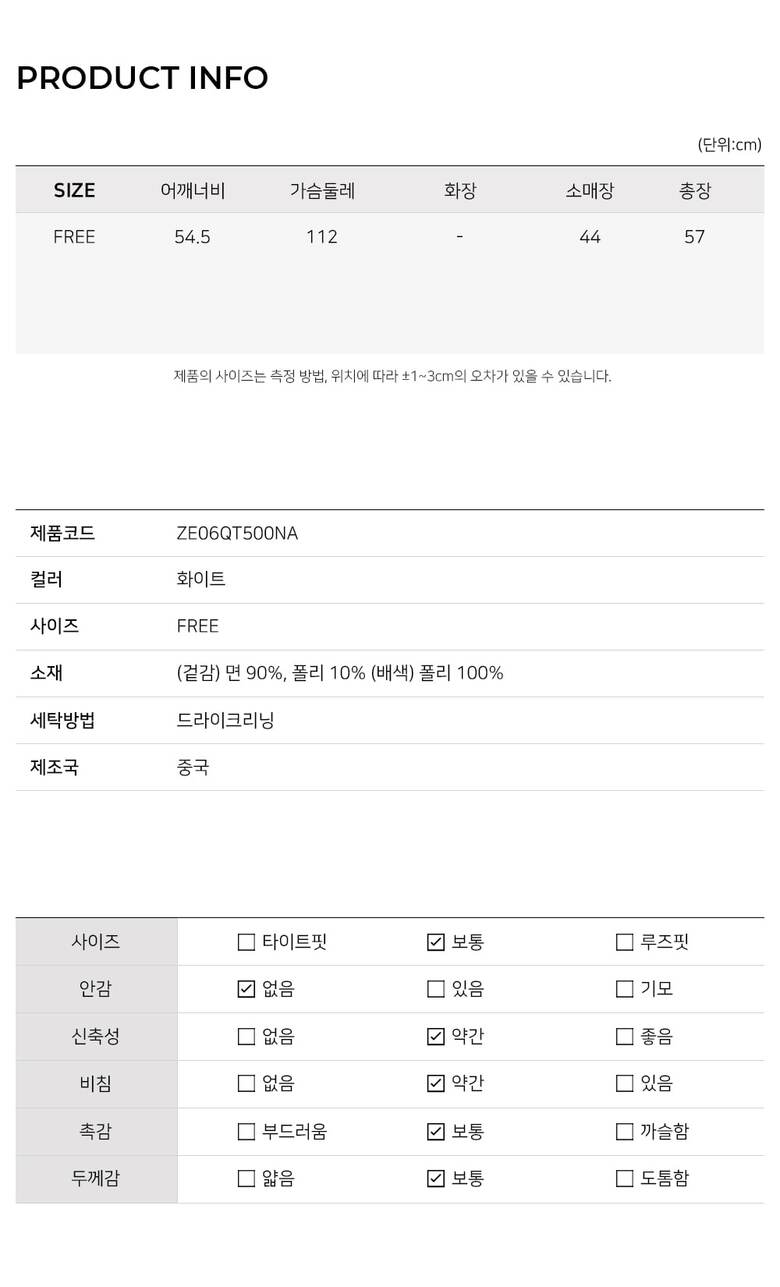 | 1. 제품 소재 (섬유의 조성 또는 혼용률을 백분율로 표시, 기능성인 경우 성적서 또는 허가서) | 상세설명참조 |