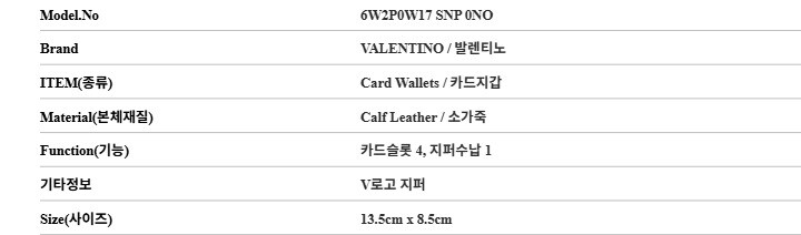발렌티노 6W2P0W17 SNP 0NO (P0W17 SNP 0NO) 가라바니 V로고 지퍼 카드지갑