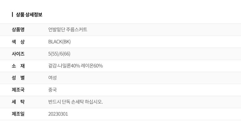 | 6. 세탁방법 및 취급시 주의사항 | 상세페이지 참조 |