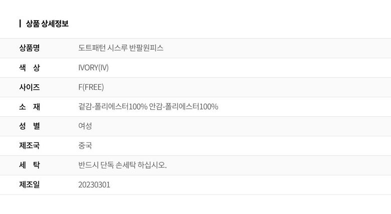 | 6. 세탁방법 및 취급시 주의사항 | 상세페이지 참조 |