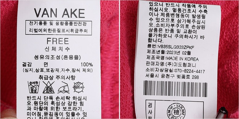 | 6. 세탁방법 및 취급시 주의사항 | 상세페이지 참조 |