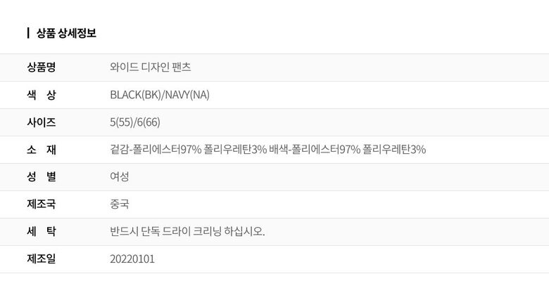 | 6. 세탁방법 및 취급시 주의사항 | 상세페이지 참조 |