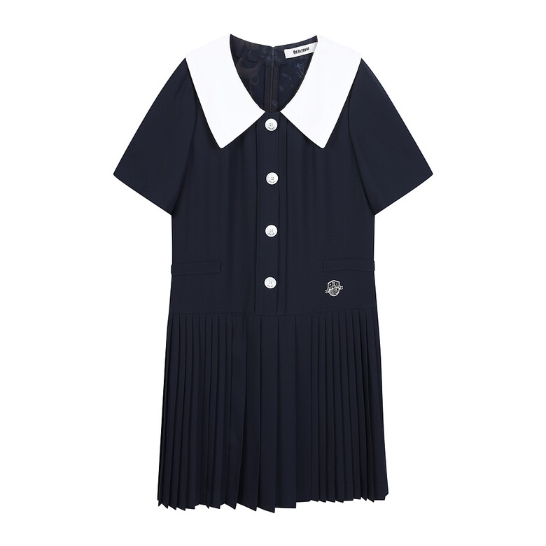 [에꼴드파리/드라로얄] 밑단 플리츠 카라 반팔 원피스_RB27WOA006Z