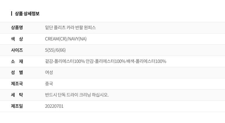 | 2. 색상 | 색상:CREAM(CR)/NAVY(NA) |