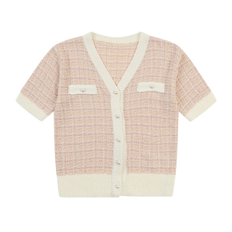[에꼴드파리] 트위드 니트반팔가디건_ZB25KRB078Z