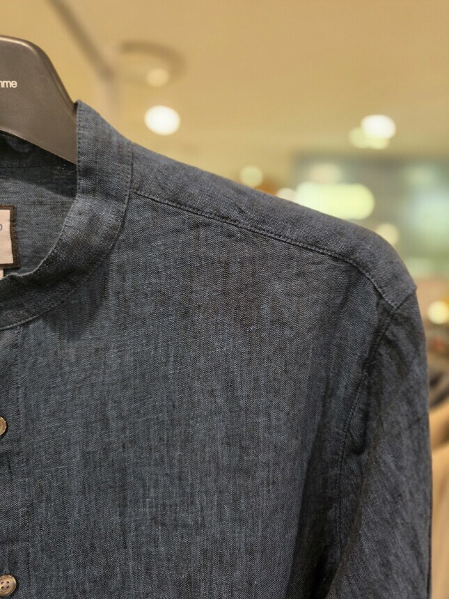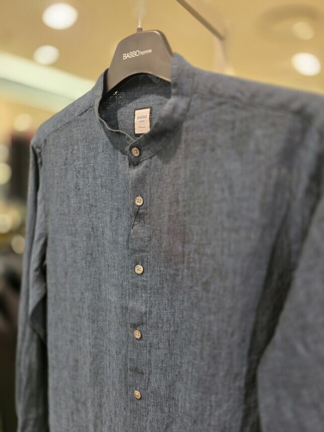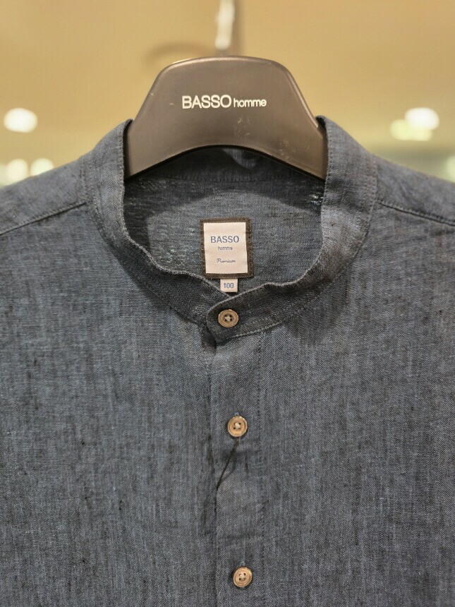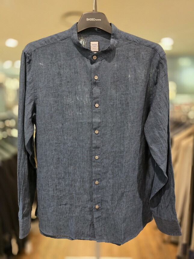 [바쏘옴므] Z1TT27A 25년 블루 헨리넥 솔리드 100% 린넨 셔츠