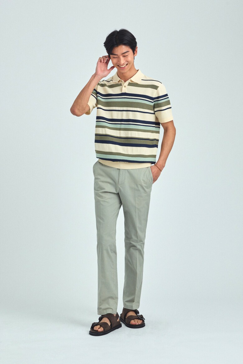 브렌우드 베이지 마이크로프린트 피그먼트워싱 스탠다드핏 남자 여름 면바지 BRPAM25521BEX